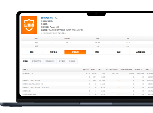 一键穿透目标企业目标商品的跨国供应链,清晰掌握其采购/销售频率、k8体育的合作伙伴及产品流向,对目标企业进行深度评估,为精准营销与定价策略提供数据支撑